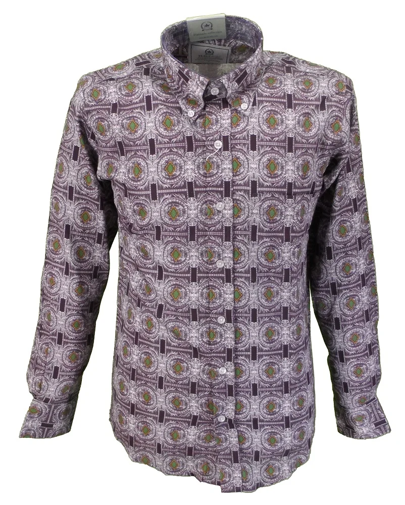 Relco Mens Platinum Purple & Grey Retro Print Shirt