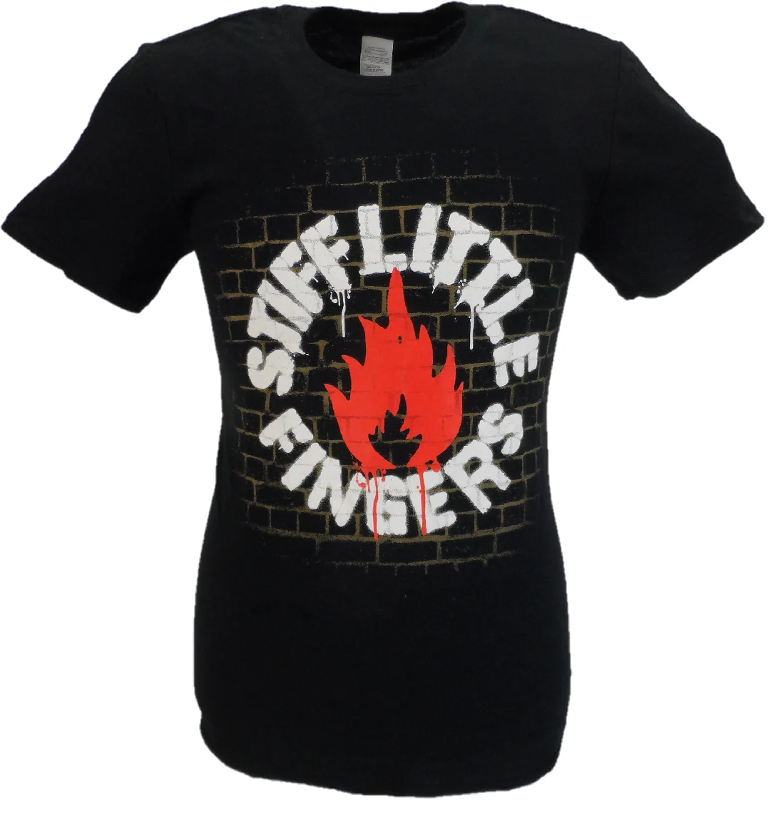 Mens Black Official Stiff Little Fingers T Shirts Wall T Shirt