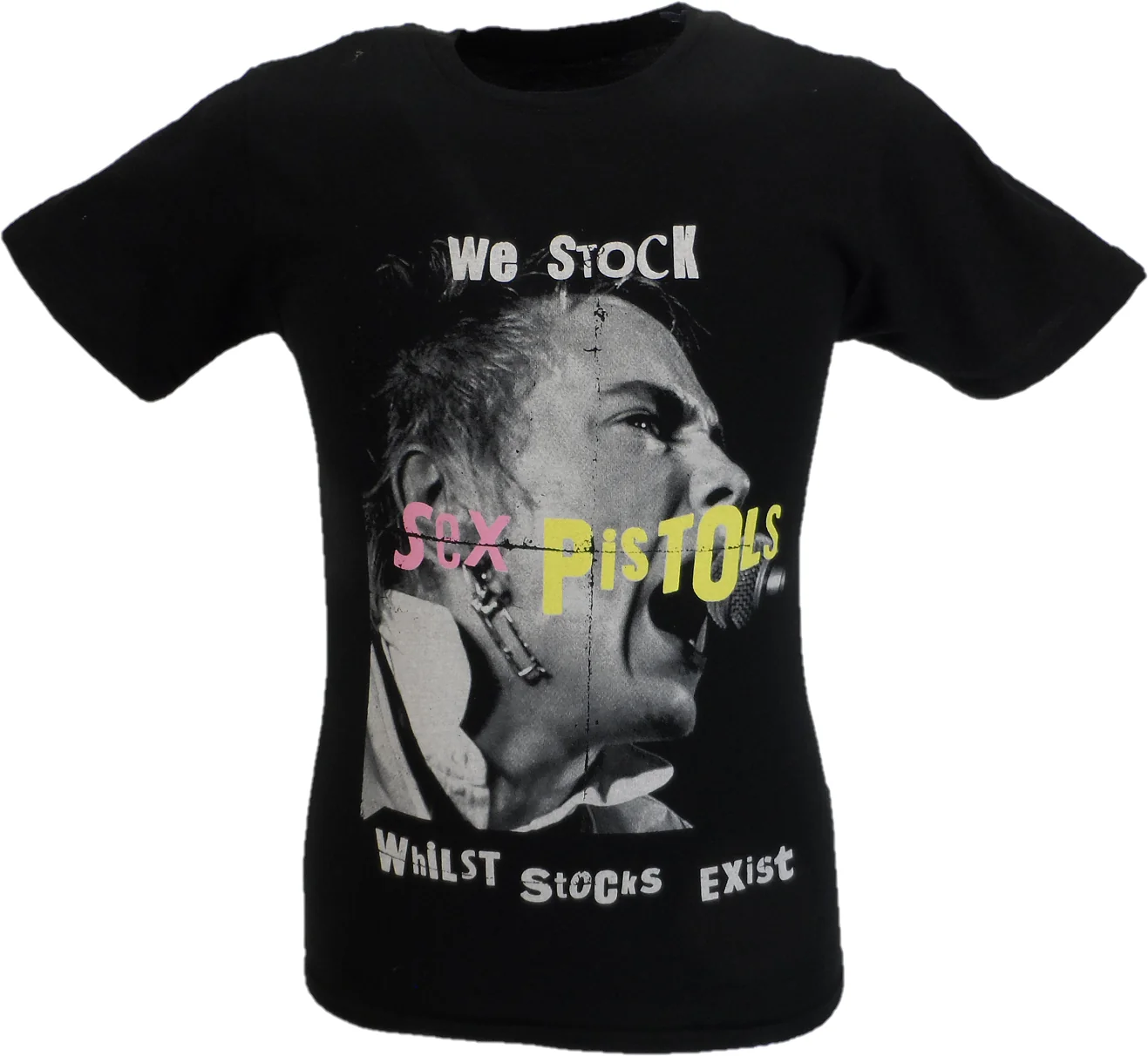 Mens Black Official We Stock The Sex Pistols T Shirt