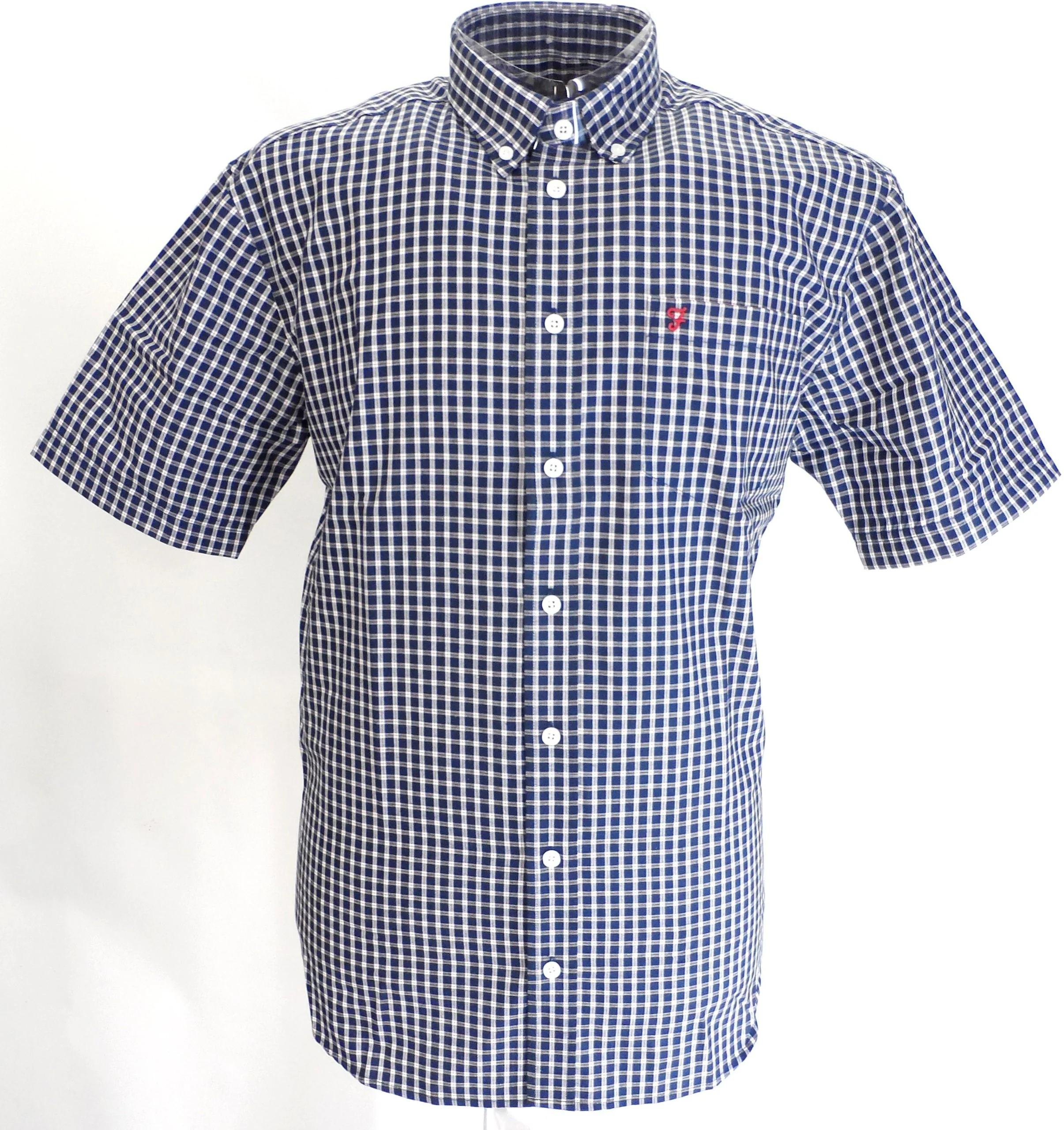 Farah Navy Oxford Cotton Short Sleeved Retro Mod Button Down Shirts