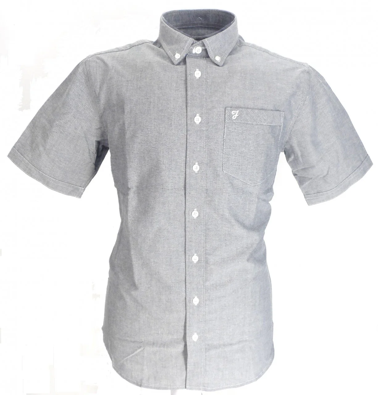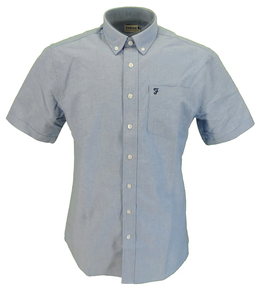 Farah Lt Blue Oxford Cotton Short Sleeved Retro Mod Button Down Shirts